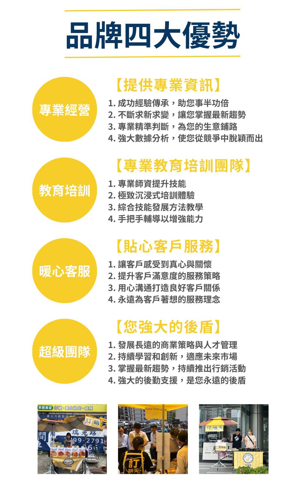 我們擁有「輕鬆創業、小資首選、總部支援」三大特點,